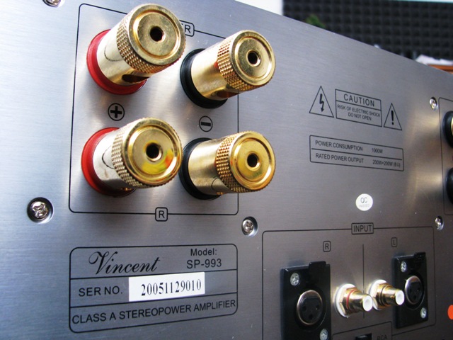 Vincent SP-993, tento zosilovač je vyrobený v celokovovom mohutnom prevedení, minimum plastov, hmotnosť samotného koncáka je 36kg, minimálna spotreba kvôli triede A je 300W, pri plnom vybudení by mal dosahovať hodnoty okolo 1 kW. Hĺbka zariadenia prerástla na úctyhodných 53 cm. V inštalácii do Vašej zastavy je potrebný aj pevný a stabilný stolík s voľnou cirkuláciou vzduchu, rátajte aj so zvýšenou teplotou vzduchu v miestnosti kvôli prevádzke SP-993, vyžareného tepla z Vincenta je dosť.